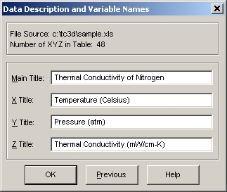 XYZ データには、デフォルトのタイトルが付けられます。このタイトルは、TableCurve 3D の様々なプロセスを通して使用されます。これらは、データアイテムとしてまとめられて TableCurve 3D Explorer に保存されます。