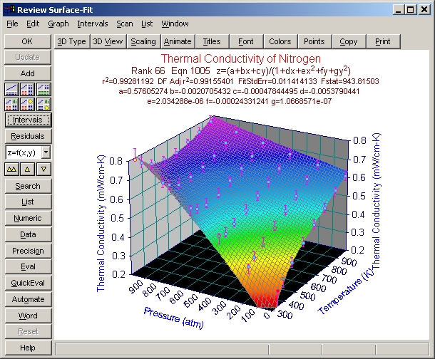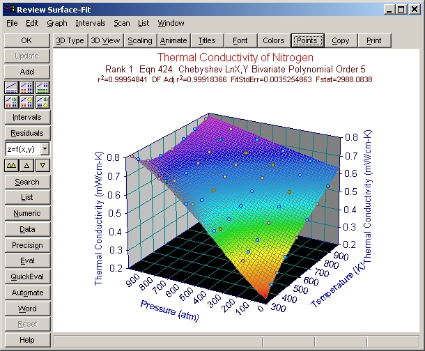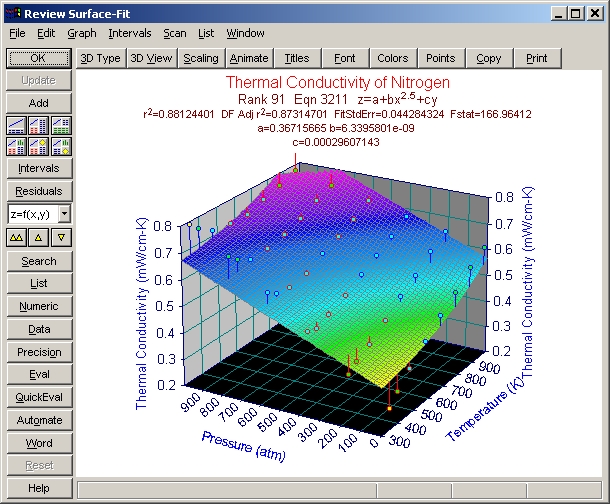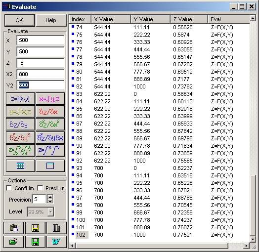 候補となる近似関数に関して、強力な評価機能を有しています。Review Surface-Fit ウィンドウの Eval ボタンまたは Window|Evaluation メニューコマンドをクリックすると、Evaluation ウィンドウが開きます。