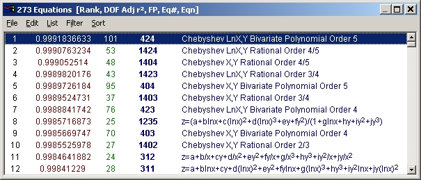 生成されたコードは、15~16 桁または 18~19桁の精度で生成され、TableCurve 3D のもつ 453,697,470 関数が可能です。Matlab では必要ないのでそれを除くすべてのコードに、関数を呼び出すための簡単なメインルーチンが付けれています。関数がエラー関数または評価用コードを含む場合は、そのコードも生成されます。