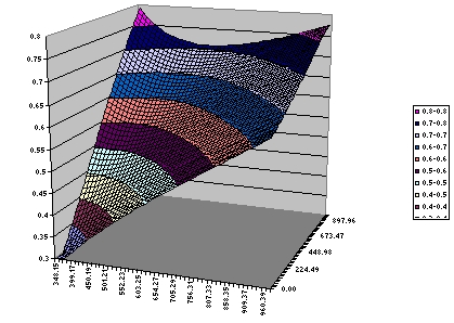 生成されたデータの初期値は、TableCurve 3D の Review Surface-Fit ウィンドウに表示されたグラフの頂点です。