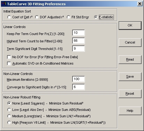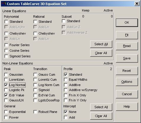 TableCurve 3D では、フィッティングに使用する線形および非線形関数を選択することができます。