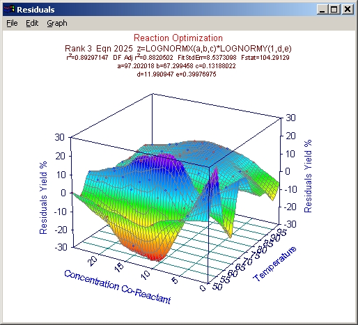 - Graph|3D View メニューコマンドをクリックし、Reset ボタンを押してから OK ボタンをクリックして下さい。Residuals ウィンドウは終了します。