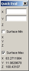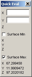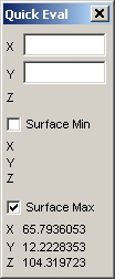 統計情報でレポートされているサーフェスの最大最小と QuickEval の最大最小は、局所的な最大最小値でなく、2次元の最小化アルゴリズムを用いて算出した値です。これらの値は、注意深くサーフェスを観察するときに役に立ちます。