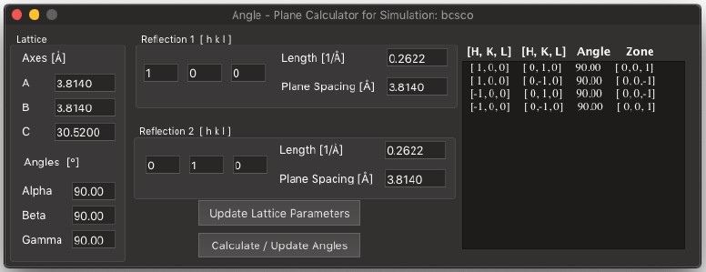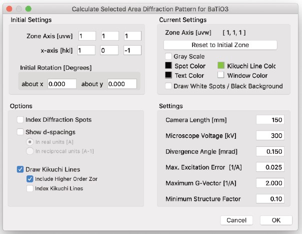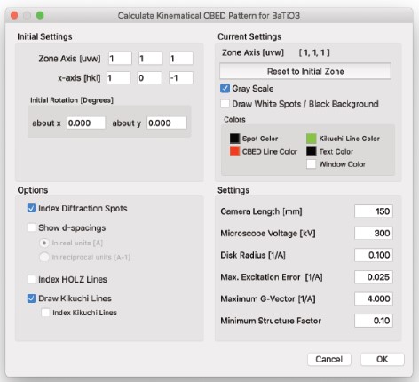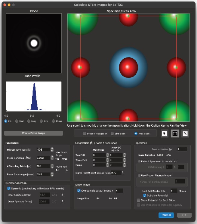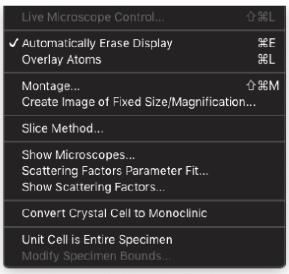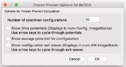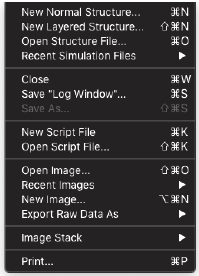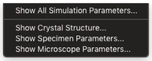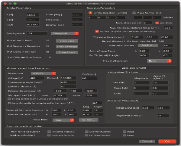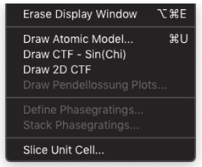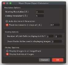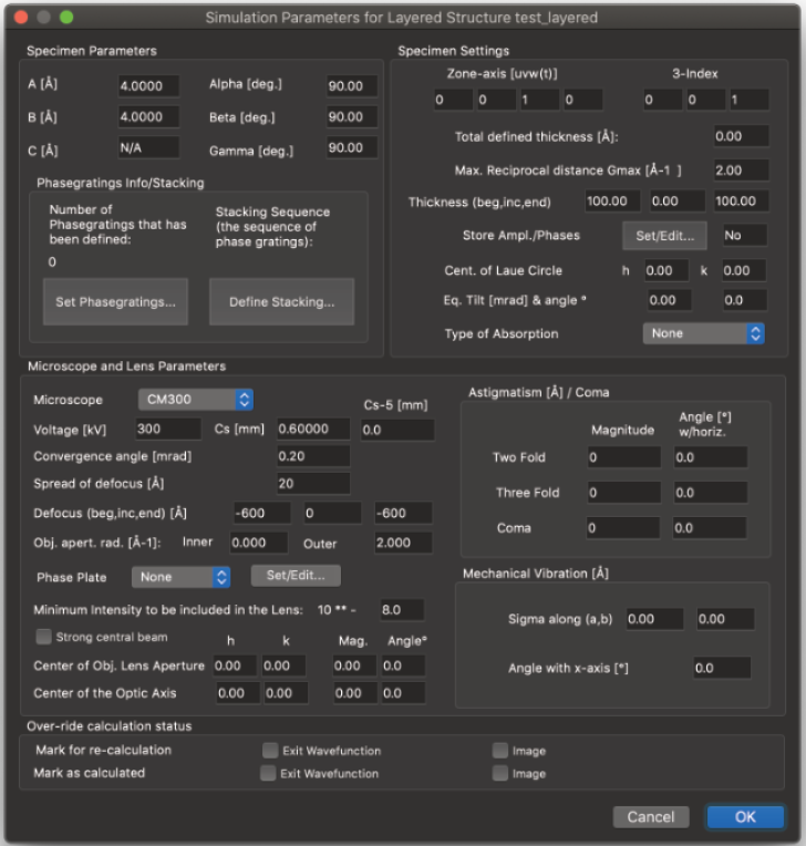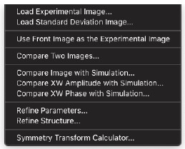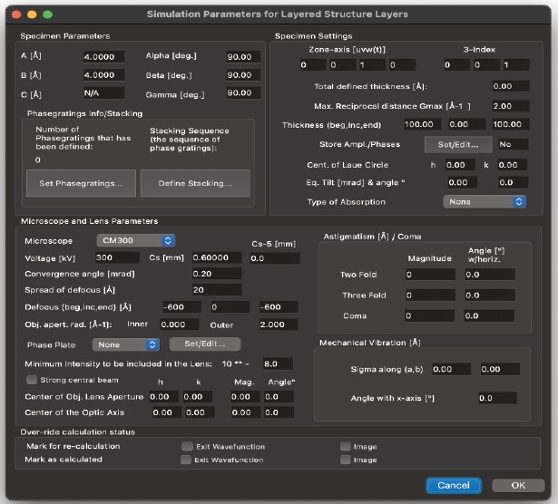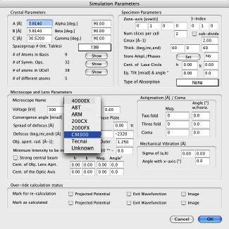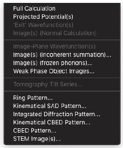 HRTEM 位相コントラスト画像のシミュレーションは、構造計算、散乱プロセス、イメージ合成の3つの計算に分割することができます。MacTempasX は、Calculate メニューコマンドを使って、それぞれの独立した計算を呼び出すことができます。