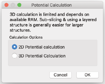 これにはマルチスライス計算も含まれます。さらに、ほとんどのオプションはメニューから設定されます。以下は、現在利用可能なメニューの一覧とその機能の説明です。