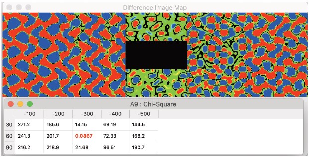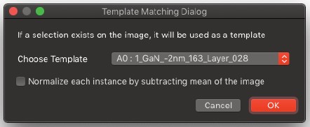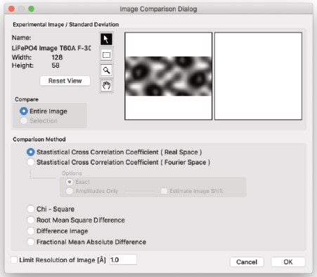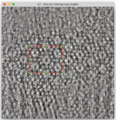 ゼオライト構造単位を示す領域を見つけるのは、元データよりもフィルタリングされた画像から始める方がはるかに簡単です。構造単位を含む領域を抽出することで、テンプレートとフィルタリングされた画像との間の相互相関係数を、画像に対するテンプレートのあらゆる位置について計算することができます(Paciornik et al., 1996)。