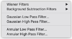 ウィーナーフィルタは、最小二乗法で信号Fc(u)の最適な推定値を与えます。背景減算フィルタは、「信号」(Fc(u))と「ノイズ」(Fa(u))の振幅が同程度である周波数でわずかに強い減衰をもたらしますが、それ以外はウィーナーフィルタと非常によく似た結果をもたらします。両方のフィルターが利用可能であることを考えると、バックグラウンド減算フィルターよりもウィーナーフィルターを選択すべきであることは明らかです。