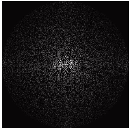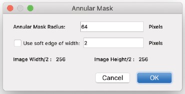 非晶質背景からの信号は、逆格子空間に広がり、その振幅は動径周波数|u|に依存し、ランダムな変動を除いて方向には依存しません。したがって、振幅|Fa(u)|を推定するには、与えられた動径周波数|u|に対する平均フーリエ振幅を求め、原理的には信号Fc(|u|)からの寄与を排除する必要があります。しかし、信号Fc(u)は逆格子空間に局在しており、中心から数ピクセル以上離れた任意の半径|u|に対して、Fc(u)は曲線|u| = 定数に沿った限られた数のサンプリング点にのみ対応します。さらに、信号Fc(u)は通常Fa(u)よりもはるかに大きく、その大きさに基づいてFa(u)と区別できる場合がよくあります。フィルターを適用して得られる結果は、背景信号の平均の計算方法にあまり左右されないことが判明しました。円全体 |u| = 定数で平均化して背景信号を推定すると、円に沿って結晶ピークが存在する場合、背景の推定振幅が実際の値よりも高くなるにもかかわらず、多くの場合良好な結果が得られます。しかし、振幅のヒストグラムから背景をより適切に推定できます。ヒストグラムは、背景信号を大きな結晶の寄与から分離し、ピクセル値の大部分は非晶質材料による背景信号に由来します。