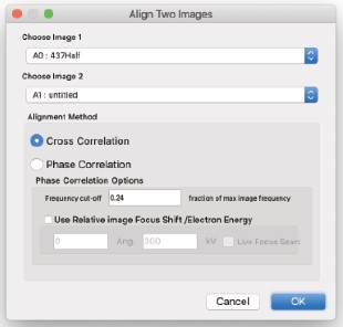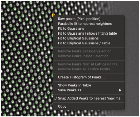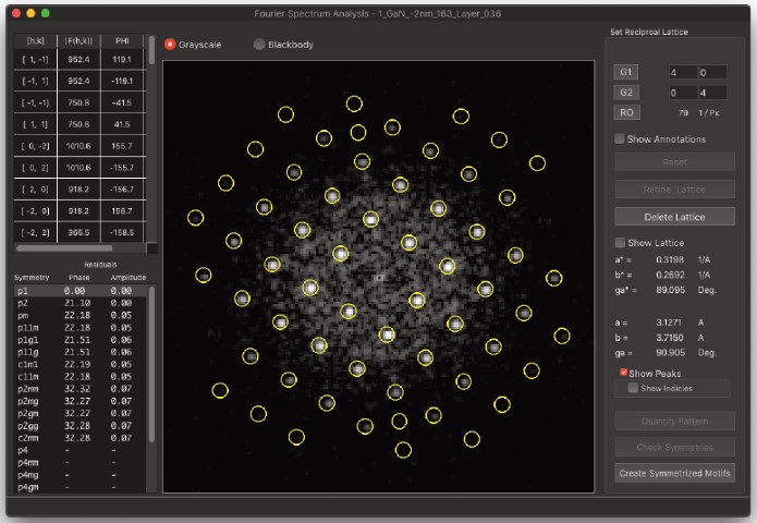 背景減算フィルターは、ソフトウェアパッケージDigital Micrograph(Gatan, Inc.)のNCEM画像処理拡張機能(Kilaas & Paciornik, 1995)に組み込まれています。ABSFフィルターは、同名の別のフィルター(Sattler & O’Keefe, 1987)と混同しないでください。後者は主観的なフィルターであり、ユーザーは結晶材料に関連する反射を識別し、強いピークを、位相がランダムで、振幅がピーク近傍の領域から取得されたフーリエ成分に置き換えることで背景を構築する必要があります。