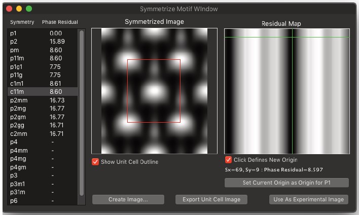 しかし、既知の結晶性物質と既知のノイズを用いたシミュレーションデータの場合、結果を定量的に比較することができます。テストでは、画像のサイズとノイズ推定値と真のノイズとの関係に応じて、信号対雑音比の改善は3~7の範囲にあることが示されています(Marks, 1996)。ウィーナーフィルタと平均背景減算フィルタはどちらも、ランダム変動を除けば信号は動径周波数|u|のみで変化すると仮定し、非晶質背景による信号のパワースペクトルを推定することで、データから自動的に作成されます。