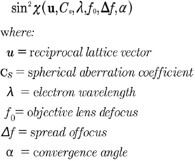 上記の式には、部分コヒーレンスの影響は含まれていません。部分コヒーレンスでは、記録された像は、エネルギーと入射方向の広がりを持つ電子からの非コヒーレント像の和となります。しかし、部分コヒーレンスを考慮しても、記録信号が結晶成分とアモルファス成分の2つの成分に分解されることは変わりません。ただし、画像形成において非線形項が無視される限りです(O’Keefe 1979)。弱位相物体近似は通常、アモルファス層に対して有効であり、アモルファス層が画質に大きな影響を与える厚さの結晶に対しても多くの場合適用できます。