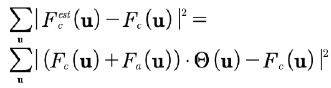 ここで、真の信号 Fc(u) と推定値 Fest(u) の二乗和が最小となるように解を最適化します。これは、次の量を最小化することで表されます。