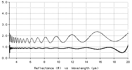 四分の一波長の光学的厚さの参照波長は 5.217 ミクロンで、これが3ミクロンと20ミクロンのあいだの、周波数スケールの中点です。