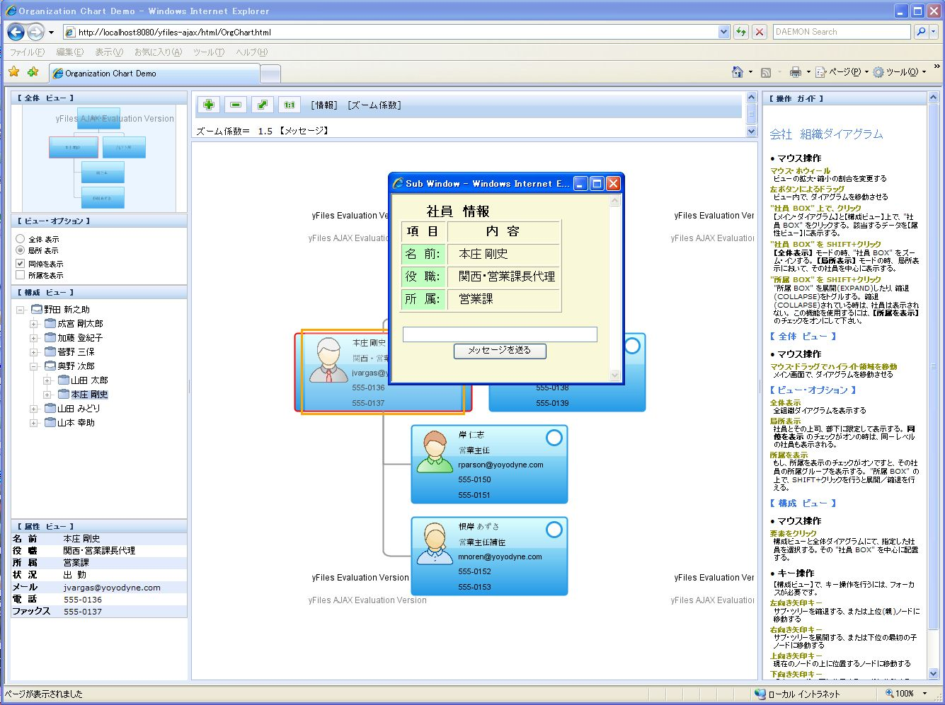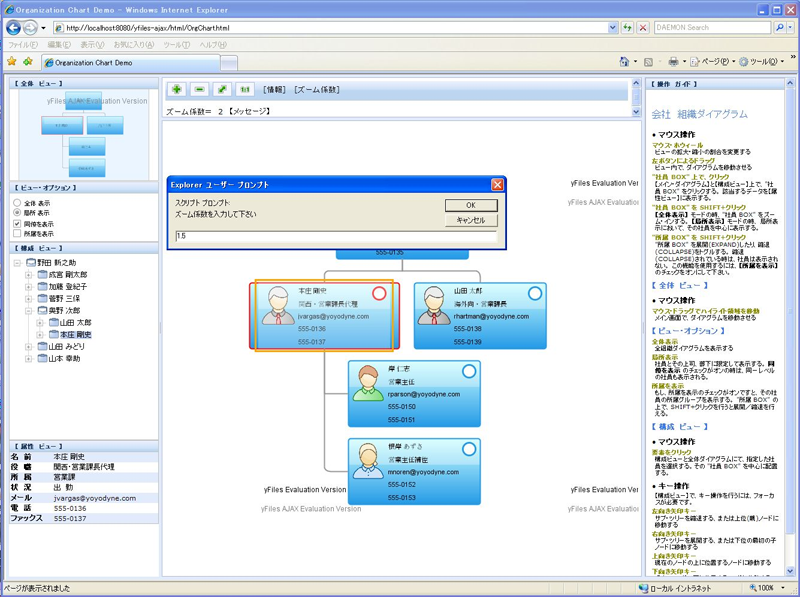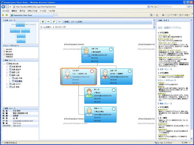 - –> 画面の中の “Organization Chart” を選択すると、”Organization Chart” デモが開きます。