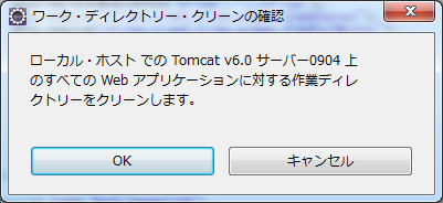 - 右下の “サーバー・ペイン” 内の “ローカル・ホストの Tomcat サーバー” 上で右クリックし、”Tomcat ワークディレクトリーをクリーン” を選択します。