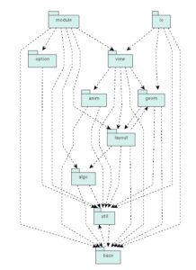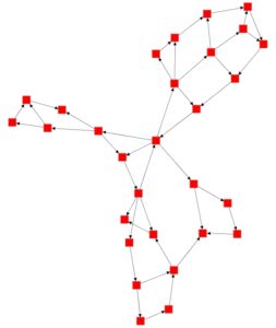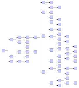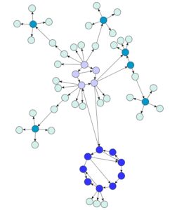 レベルごとに異なるレイアウトスタイルを示すネットワーク構造の一部。