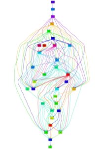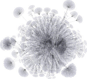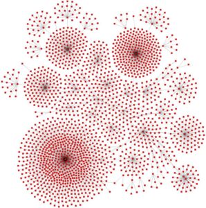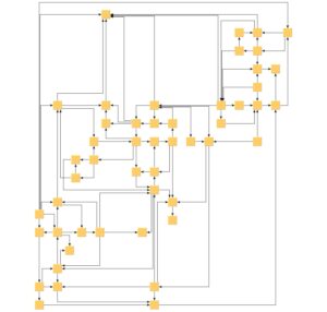 数百、数千といった多数の要素を使用する大規模なグラフを作成、編集、表示する能力は、このライブラリの強力な機能のひとつです。以下の画像は、このライブラリが大規模なダイアグラムやネットワーク図を容易に取り扱うことができることを示します。