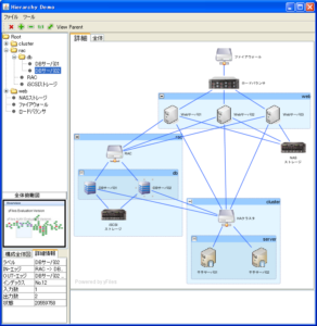 - 構成要素をいくつかのグループに分けて、各グループ毎に展開したり縮退させたりできます。注目するグループだけを展開して表示することにより、システムの管理を効率良く行えます。