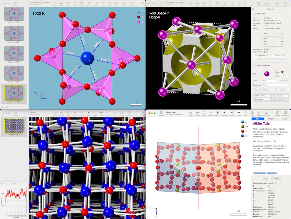 CrystalMaker 11 では、ユーザー様のご要望に応えて、結晶材料のエネルギー・モデリング機能が搭載されました。スーパーコンピューターを使わなくとも、高速でインタラクティブなシミュレーションをお使いのデスクトップ上で非常に手軽に実行できるようになります。