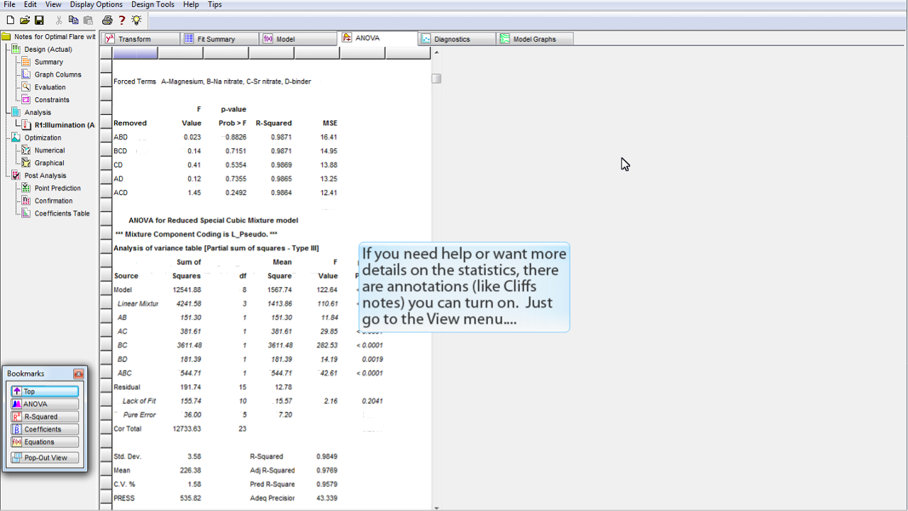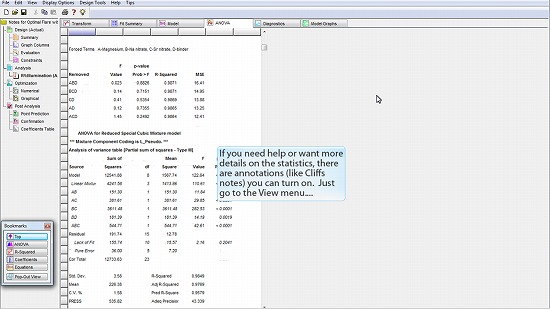 この統計量に関する説明や詳しい情報が知りたい場合は、 (クリフノートのような) 注釈を表示させることができます。